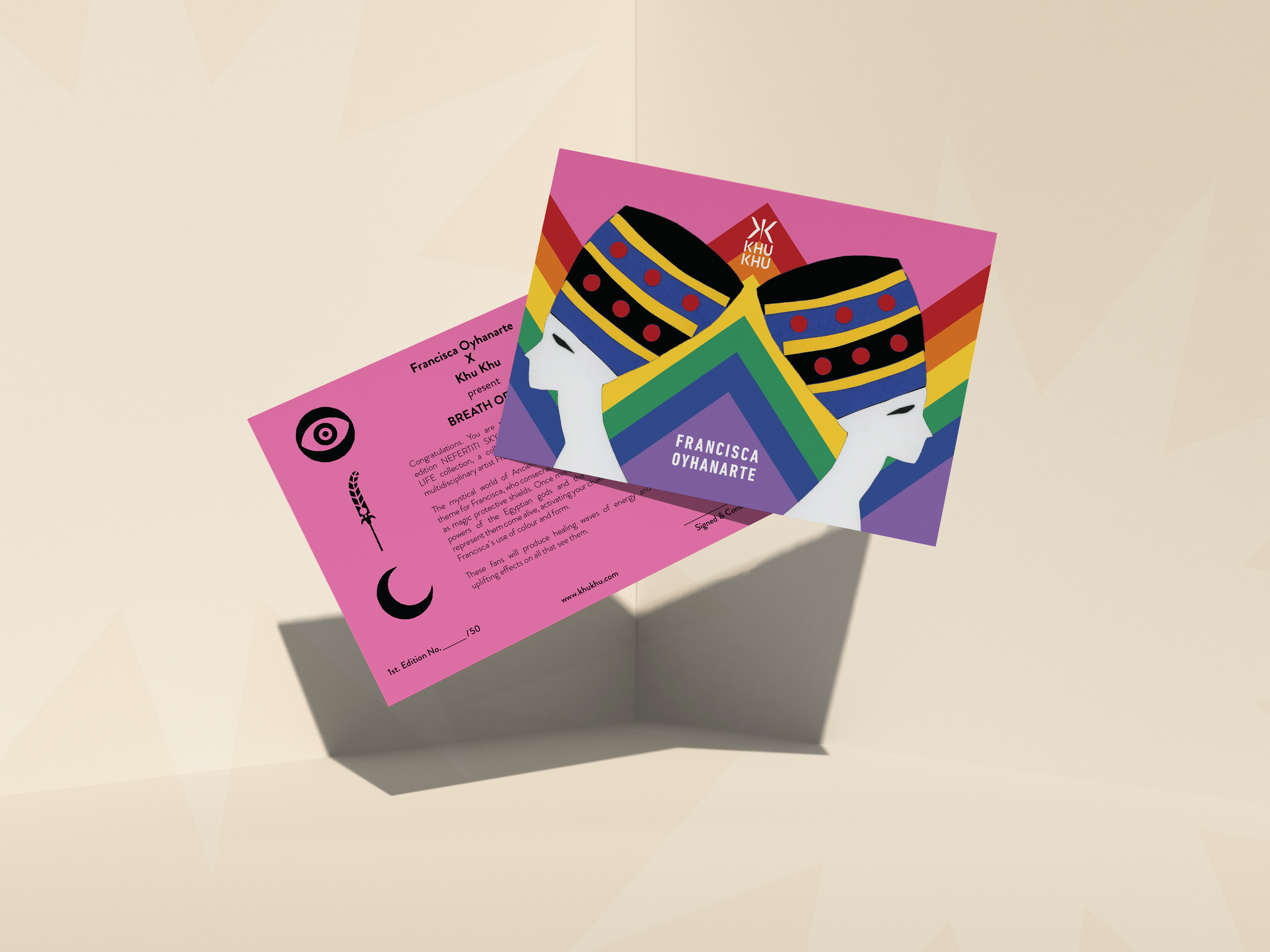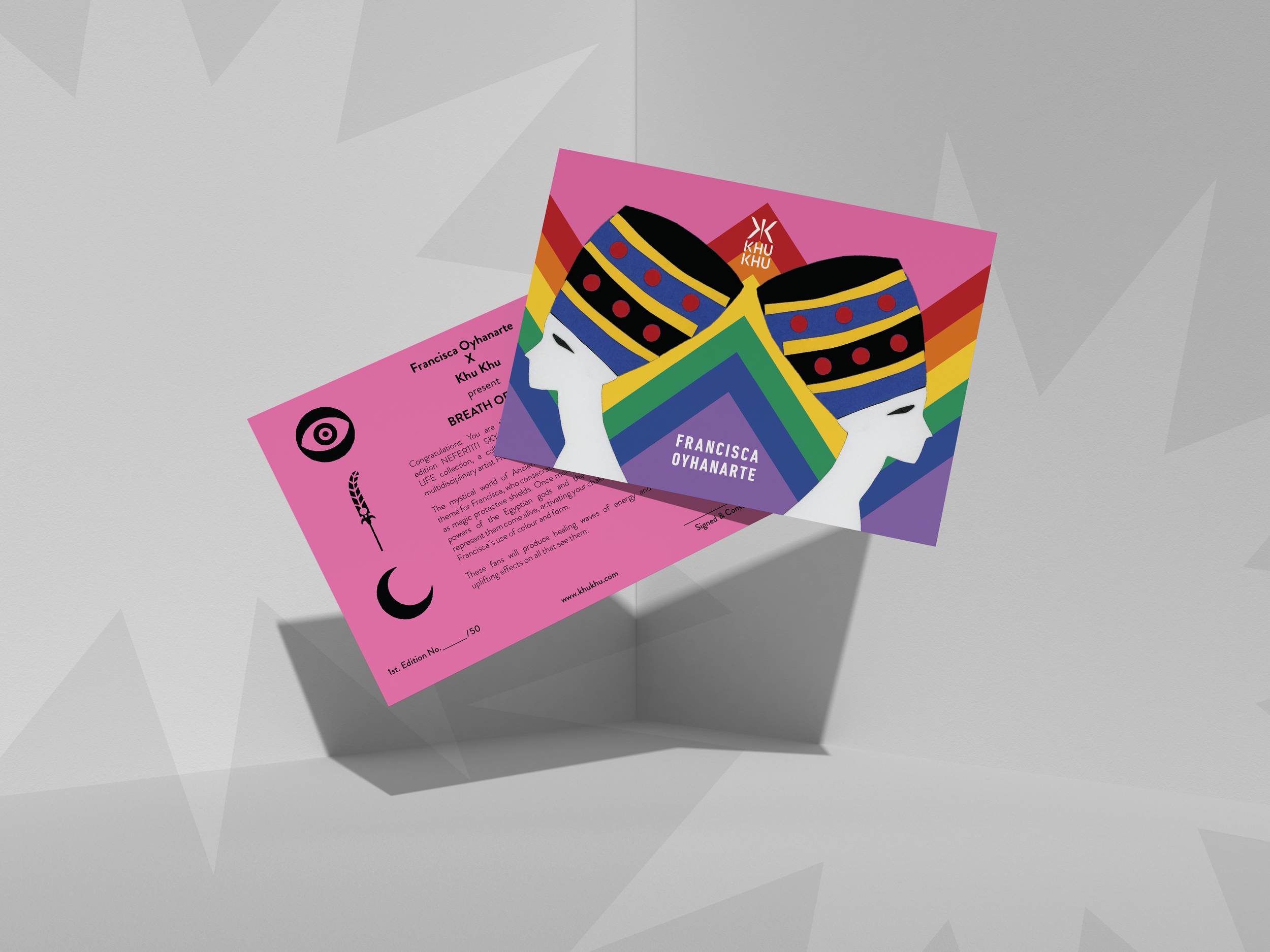 To highlight the uniqueness of each handcrafted fan, I also designed collectible postcards as part of the release, adding a tangible and personal dimension that strengthened the audience’s connection to the collection.