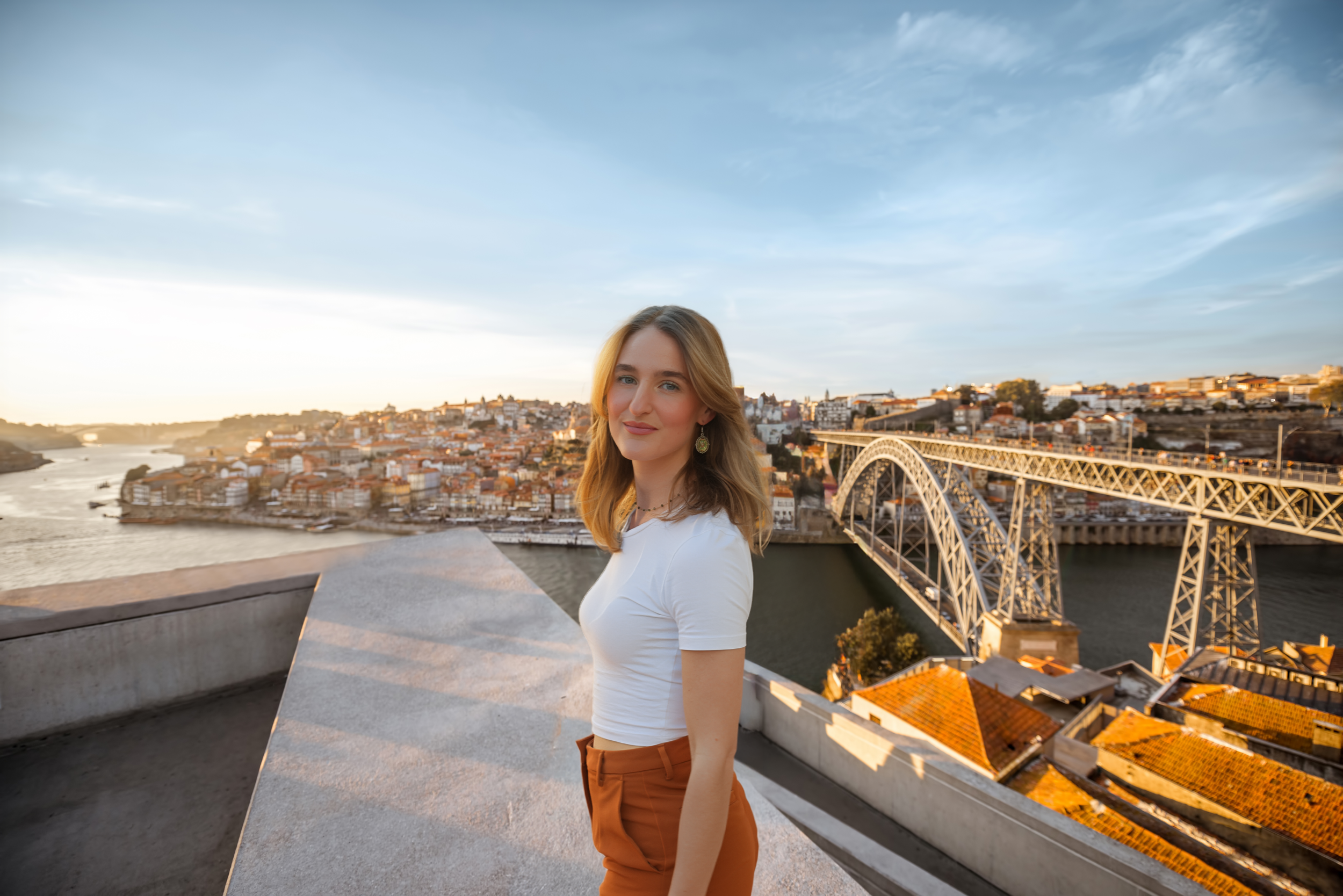 The photo was edited to place the model in one of Porto’s most iconic locations, the Dom Luís I Bridge, even though the original image was taken in Lisbon. The project involved background adaptation, lighting correction, and post-production, creating a visually engaging and location-accurate image for the digital campaign.